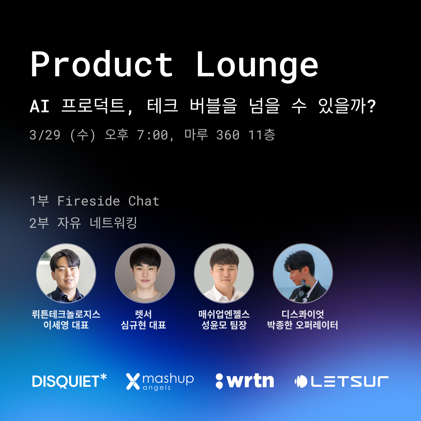 본 내용은 Disquit*의 Product Lounge 'AI 프로덕트, 테크 버블을 넘을 수 있을까?'를 바탕으로 작성되었습니다.