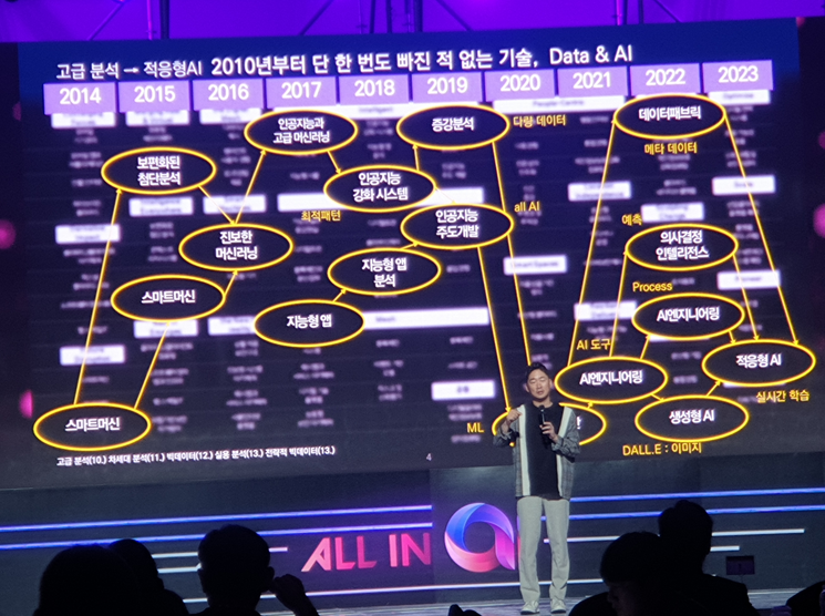 '제품'보다 '의미'를 구매하는 시장에서 디자인에 있어 '데이터'의 역할은 무엇이고 '경험' 설계를 어떻게 입체적으로 할 수 있을지가 포인트. 스마트 티비 홈 화면에 개인 페르소나 맞춤형 경험 문구를 생성하자 클릭률이 0.X%에서 비약적으로 상승했다.