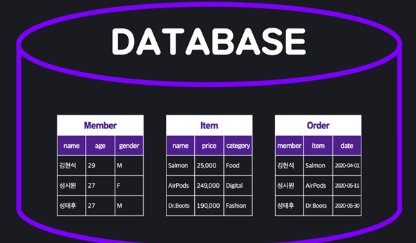 데이터베이스(DB) = ‘일정한 체계속에 저장된 데이터의 집합’