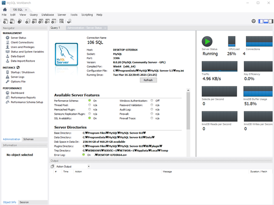 Administration -> Server status = 서버의 현재 상태