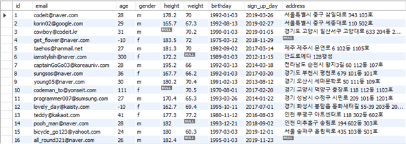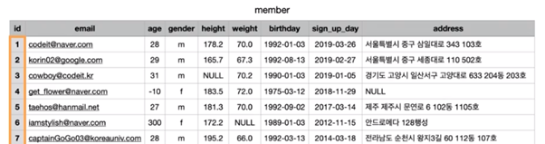 id라는 column은 각각의 row를 식별하기 위해 임의적으로 추가된 속성이다.