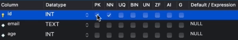 자동 증가, 체크해 놓으면 row가 추가될 때 자동으로 이전 row보다 1 증가된 값이 들어간다.