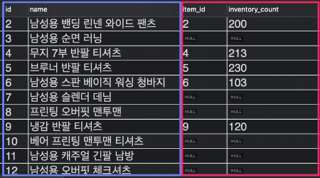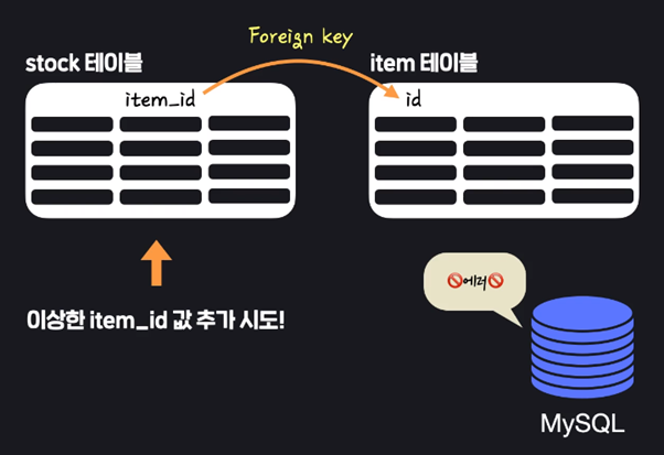 ~stock (자식)테이블의 item_id가 item (부모)테이블의 id 컬럼을 참조하는 경우