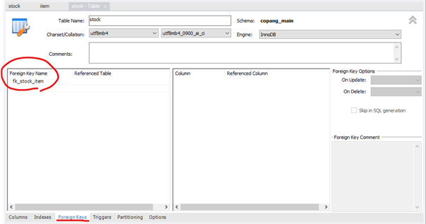 table의 Setting에서 Foreign Keys를 선택하고 Foreign Key Name을 설정한다