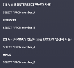 *INTERSECT와 MINUS는 MySQL에서 지원하지 않는다!