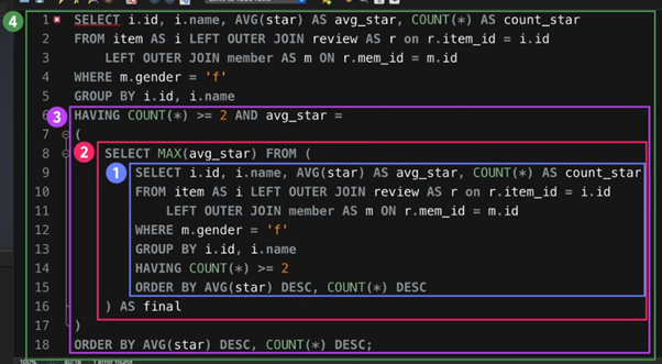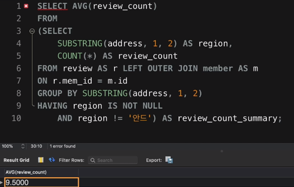 FROM절의 서브쿼리는 테이블 형태의 결과를 return한다 (활용성 높다!)