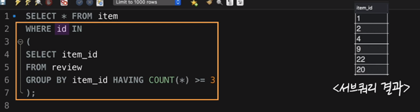 IN으로 컬럼의 여러 row값을 return하는 조건도 가능하다!