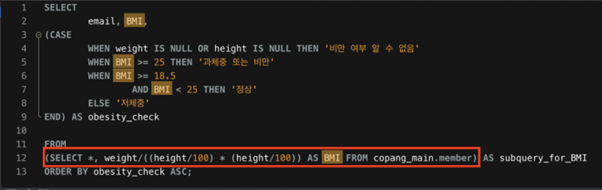 서브쿼리를 사용하면 컬럼 alias를 SQL문에 바로 사용하지 못하던 문제도 해결이 가능하다