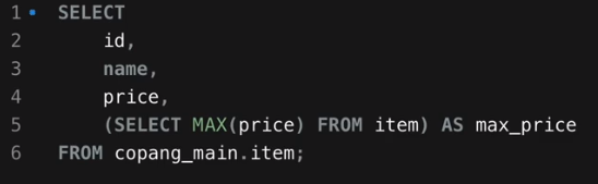 SELECT절의 서브쿼리는 보통 새로운 column 조회를 추가하는 경우다!