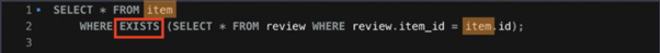 EXISTS는 조건에 맞는 값이 존재하면 return한다 / NOT EXISTS는 그 반대
