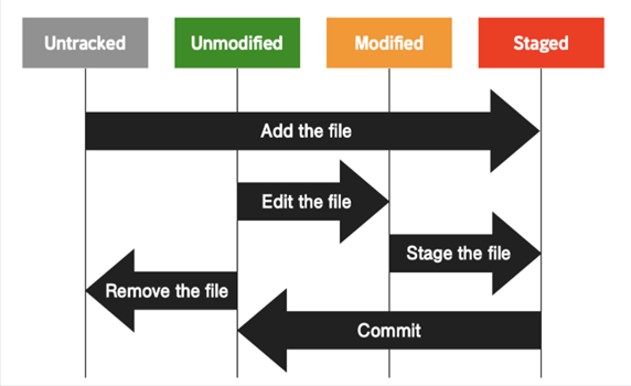 - Staged 상태: 파일 수정 후에 add되어 staging area에 있는 상태
