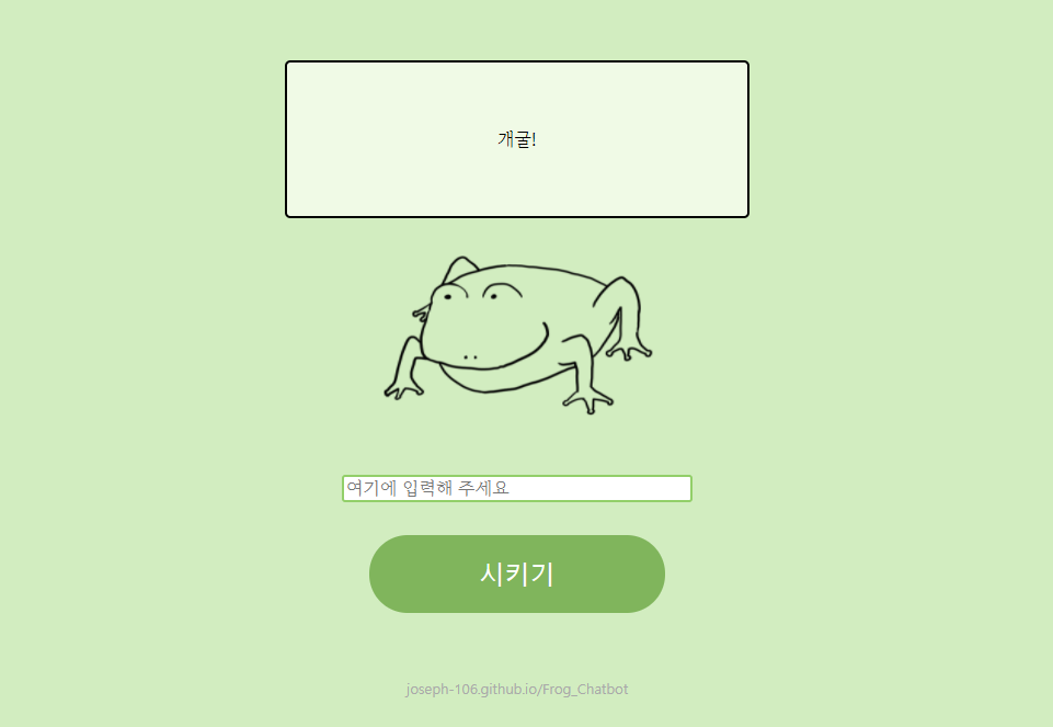 JavaScript로 챗봇을 구현하는 프로젝트. Contribute to joseph-106/Frog_Chatbot development by creating an account on GitHub.