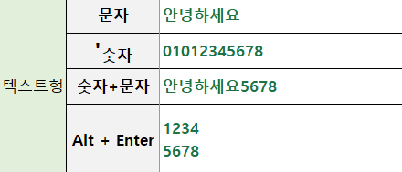 - [Alt] + [Enter]를 입력하면 칸 안에서 줄바꿈