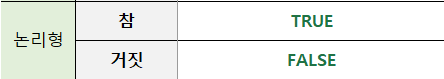- 논리형은 TRUE or FALSE 입력